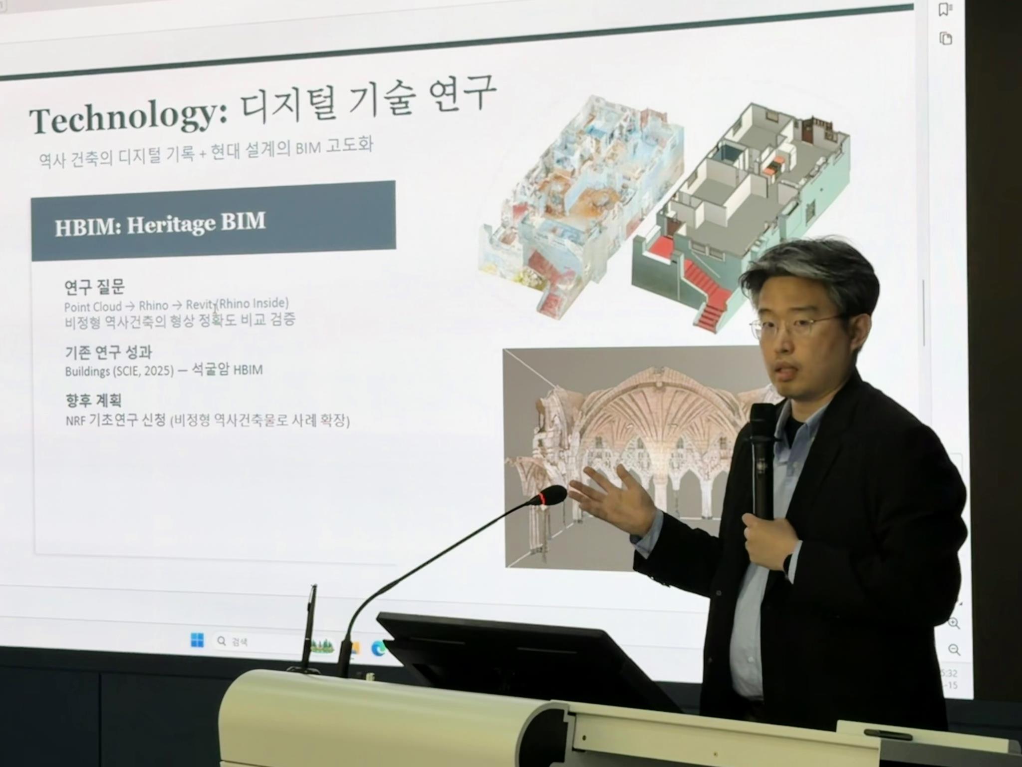 권용찬 교수(건축학과)가 본인의 연구 분야를 설명하는 모습