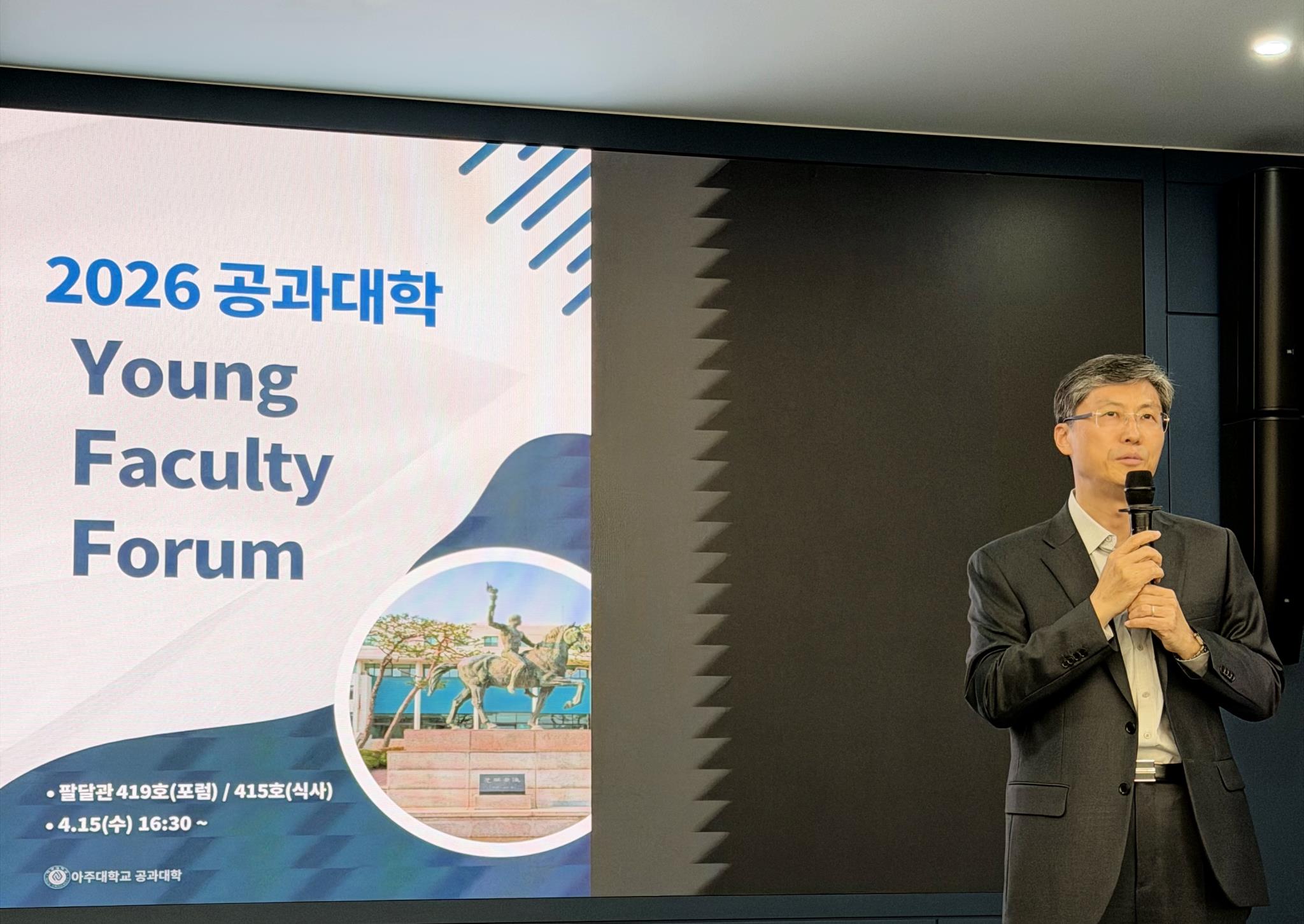 아주대학교 공과대학이 소속 교원 간의 소통과 네트워킹 확대를 위해 ‘영 패컬티 포럼’을 열었다. 신진 교원들이 함께 자리해 서로의 연구 분야를 공유하고 학교의 주요 현안을 공유하는 자리로 마련됐다.