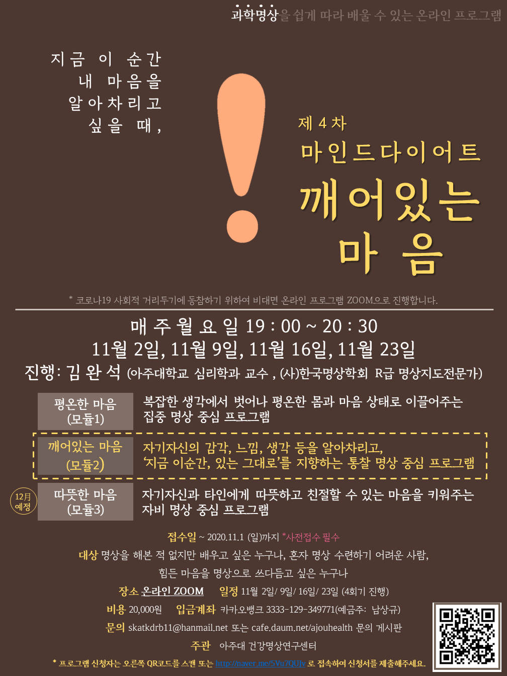 명상연구센터 제4차 『마인드 다이어트』 11월 프로그램 진행 안내