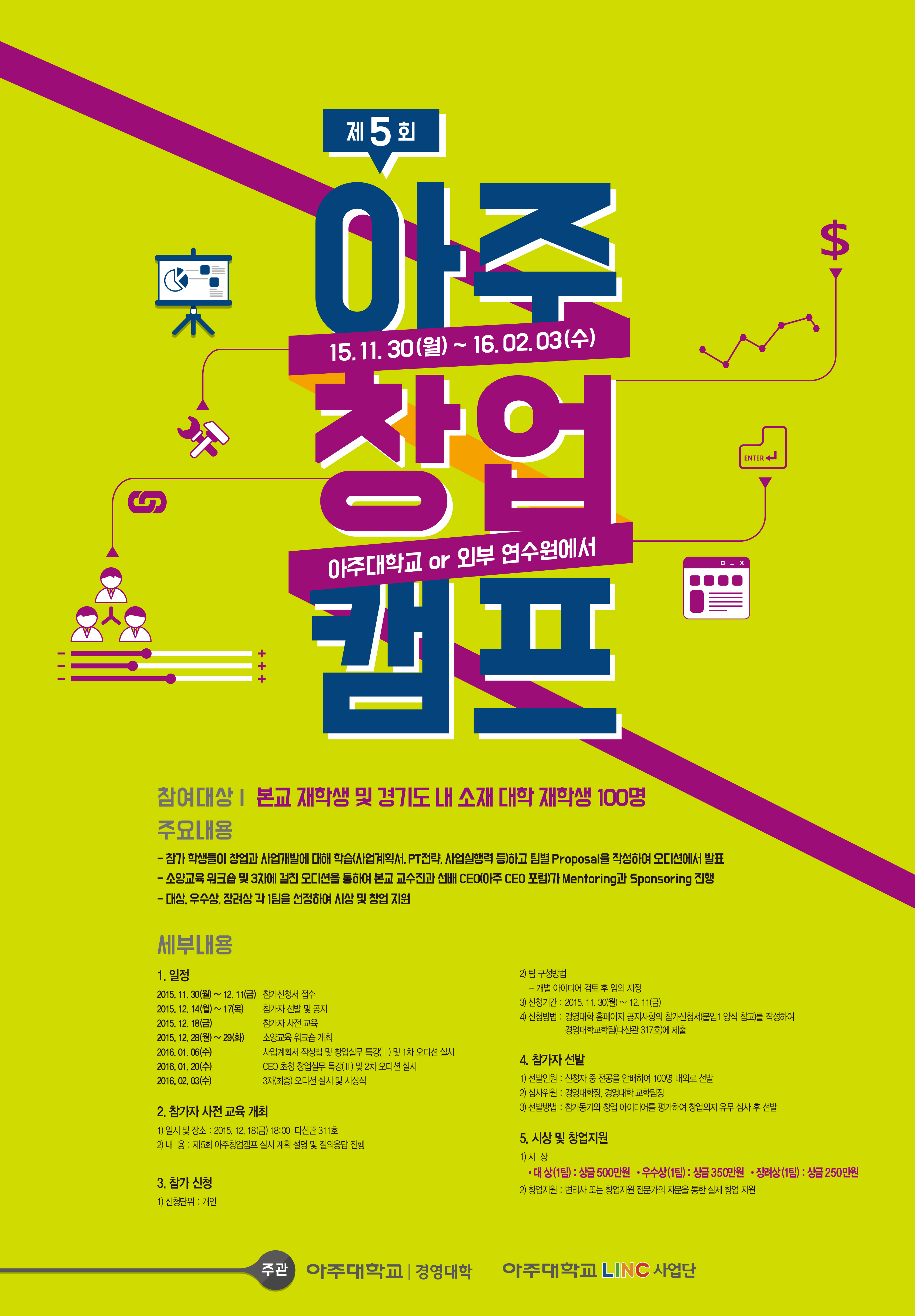 제5회 아주창업캠프 개최 안내 및 참가자 모집 - 학점인정프로그램(3학점)