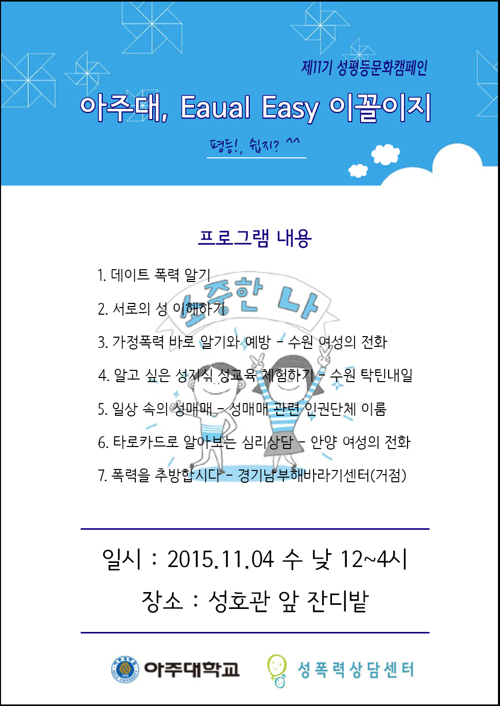 [성폭력상담센터] 제11회 성평등문화캠페인 행사 안내