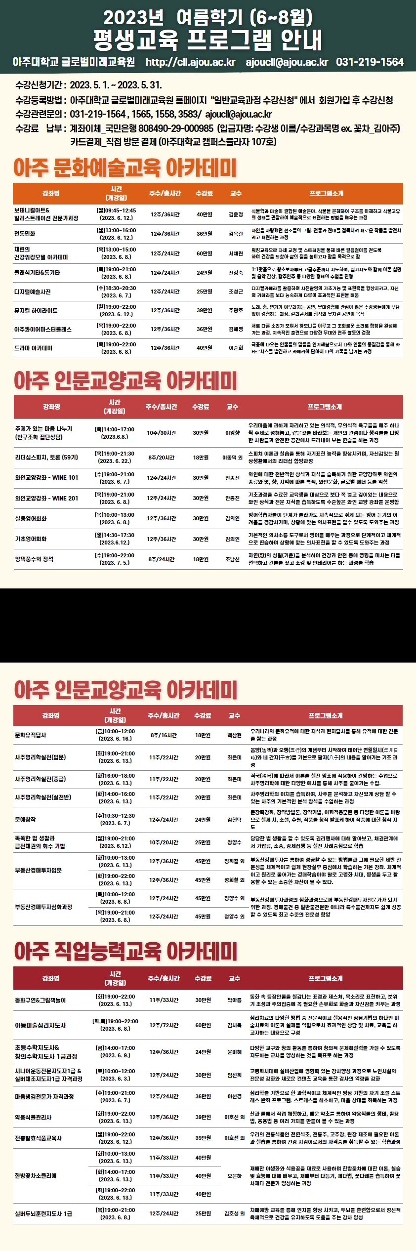 [글로벌미래교육원]2023 여름학기 평생교육프로그램 수강 신청 중!! (뮤지컬 하이라이트, 마음챙김전문가 자격과정,와인교양강좌 등.....다양한 과정)