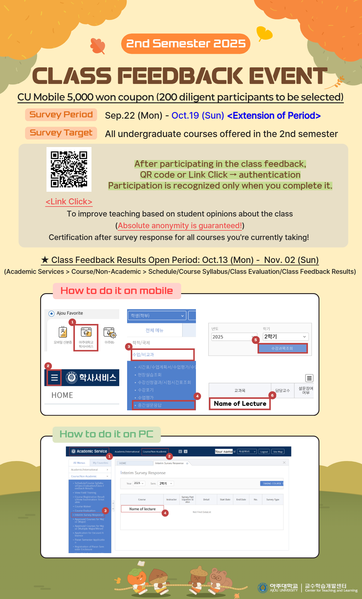 [학사] [Undergraduate] Extension of Class Feedback Participation Period (Until October 19th)수업피드백