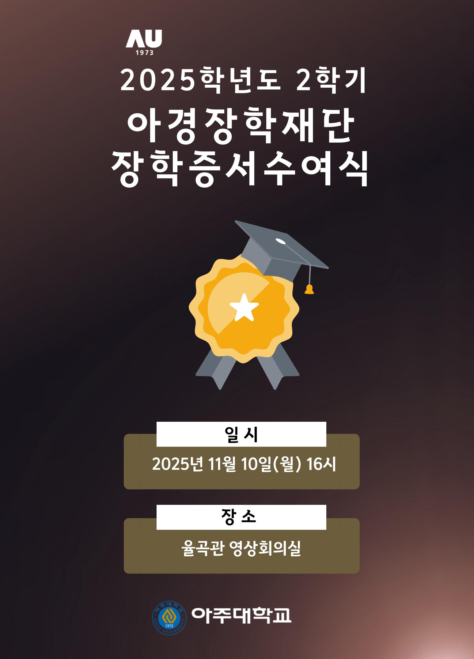 [장학] 2025-2학기 아경장학재단 장학증서 수여식 진행 안내_11.10(월) 16:00 율곡관 영상회의실