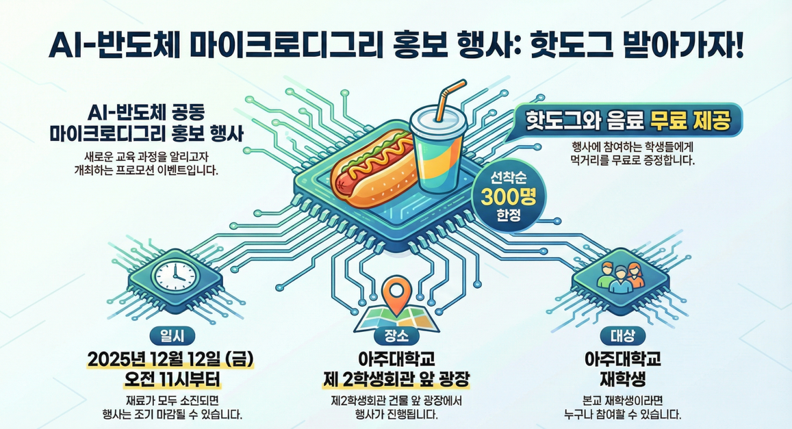[행사] [RISE] (아주대-서울과기대) AI-반도체 공동 마이크로디그리 홍보행사, 핫도그&음료 받아가자!(~12/26(금) 까지)