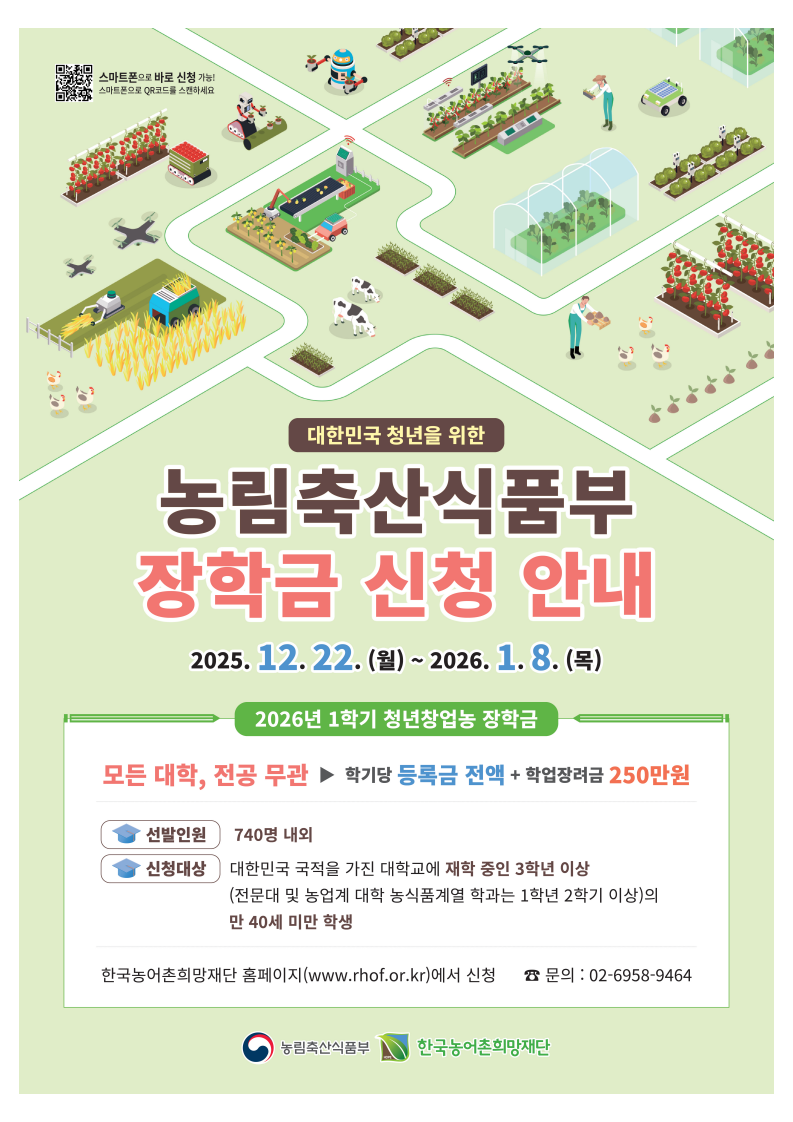[교외장학] 2026학년도 1학기 농림축산식품부(청년창업농) 장학금 신청 공고