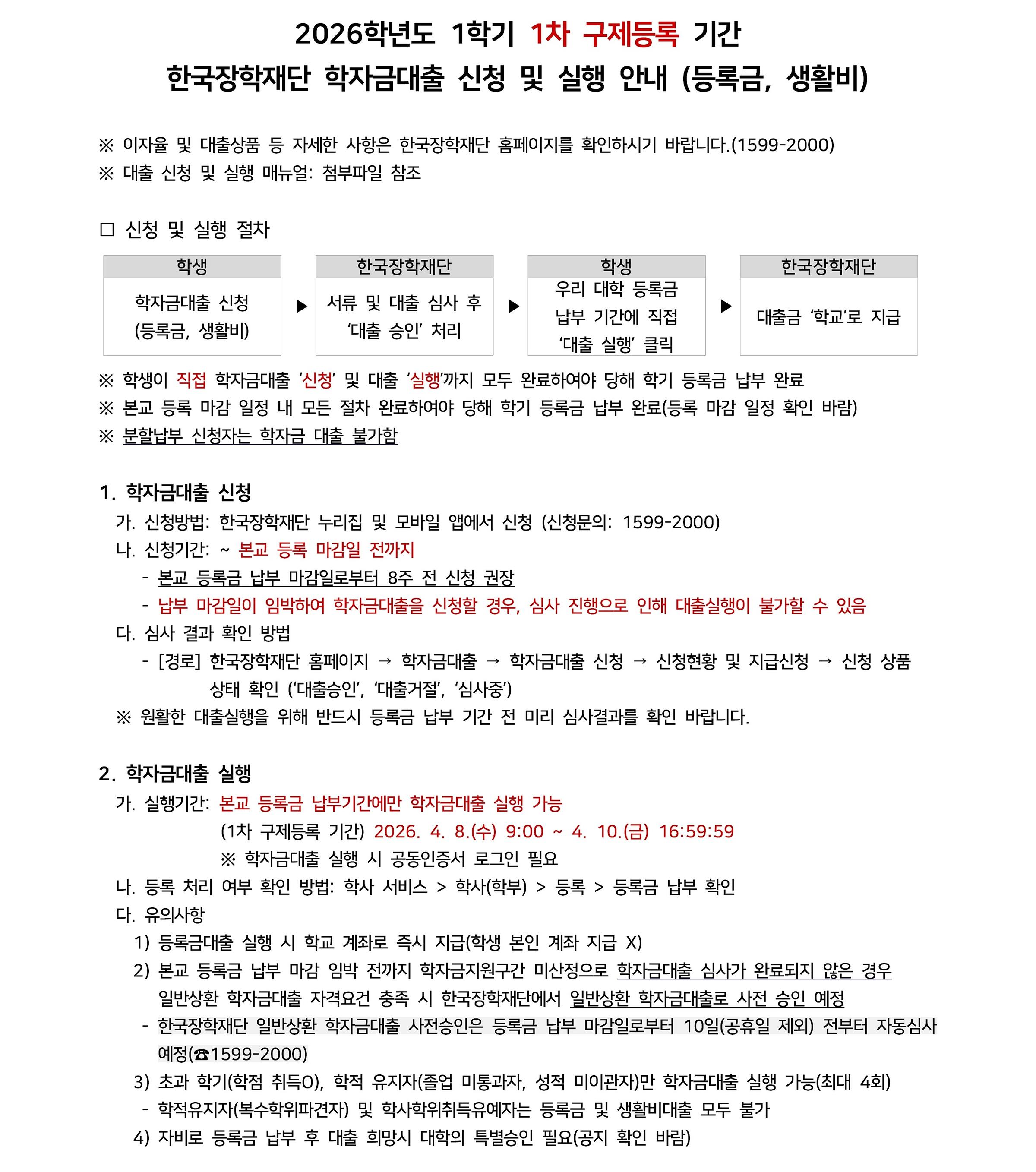 [장학] [학자금대출] 2026-1 구제등록 기간 한국장학재단 학자금대출 안내(1차)