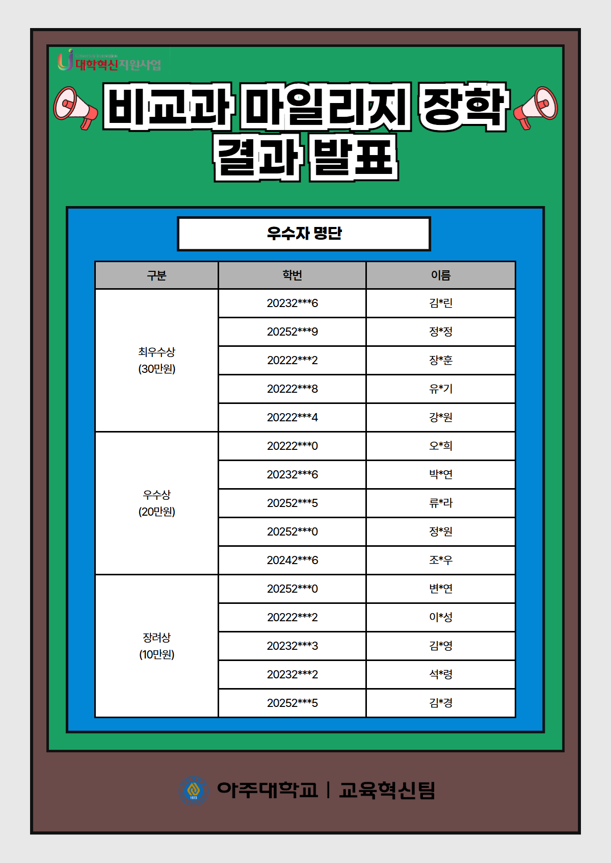 [๋น„๊ต๊ณผ] ๐ŸŽ‰[๊ต์œกํ˜์‹ ํŒ€] 2026ํ•™๋…„๋„ 1ํ•™๊ธฐ ๋น„๊ต๊ณผ ๋งˆ์ผ๋ฆฌ์ง€ ์žฅํ•™ ๊ฒฐ๊ณผ ๋ฐœํ‘œ๐ŸŽ‰