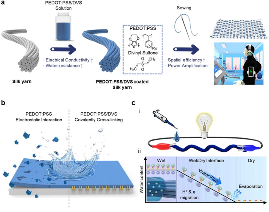 윤태광 교수는 “이번 연구를 통해 전도성 고분자인 PEDOT:PSS의 수분 안전성을 획기적으로 향상함으로써 세척 가능하며 에너지 생성 성능이 우수한 섬유형 에너지 하베스팅 시스템을 개발했다”라며, “다양한 분야에서 응용을 통해 후속 연구를 계속 진행할 계획”이라고 전했다.
